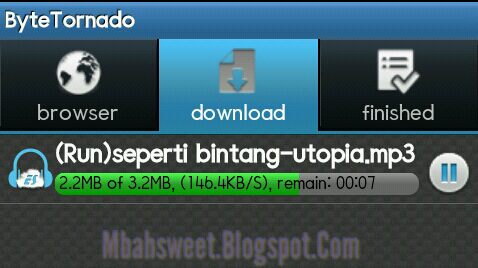 Sehingga untuk mengunduh satu atau beberapa mp3 anda tidak perlu memakai browser seperti opera,firefo,chrome,ucweb browser dan lain-lain,cukup buka aplikasi ByteTornado selanjutya taip URL diBrowser ByteTornado.